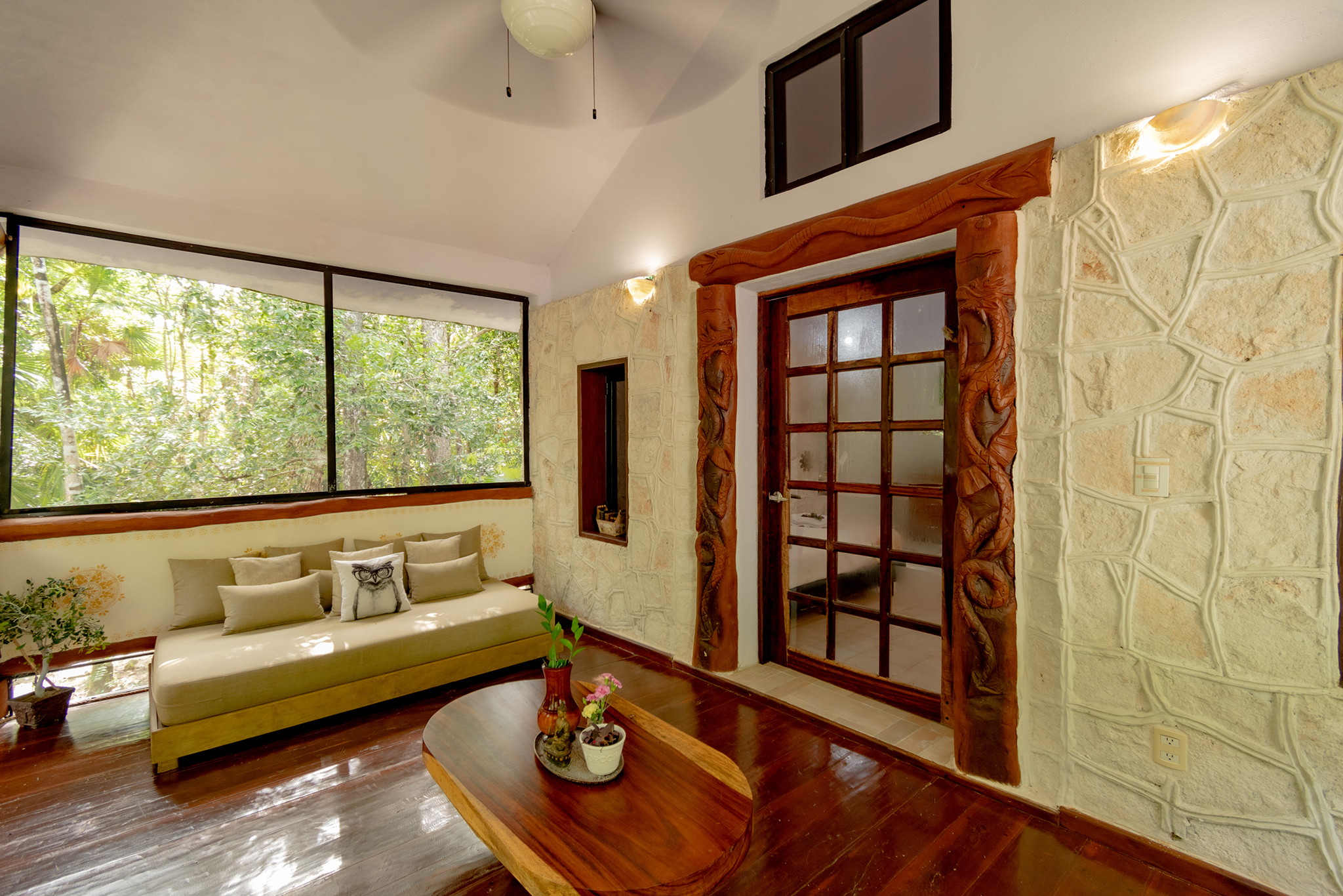 Casa Búho is a small but cozy house with a unique style that makes it perfect for a romantic getaway in the heart of the enigmatic Mayan jungle.